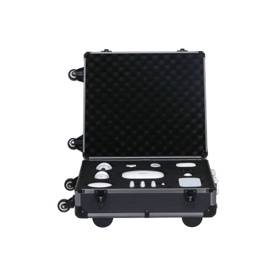 > Easy to carry around, the box is designed as a carry-on luggage with universal wheels.